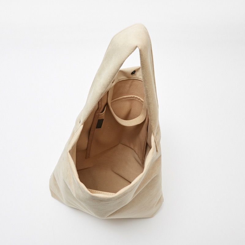 口元はホックで留めることができ、上部中央がたわむフォルムも魅力的です。