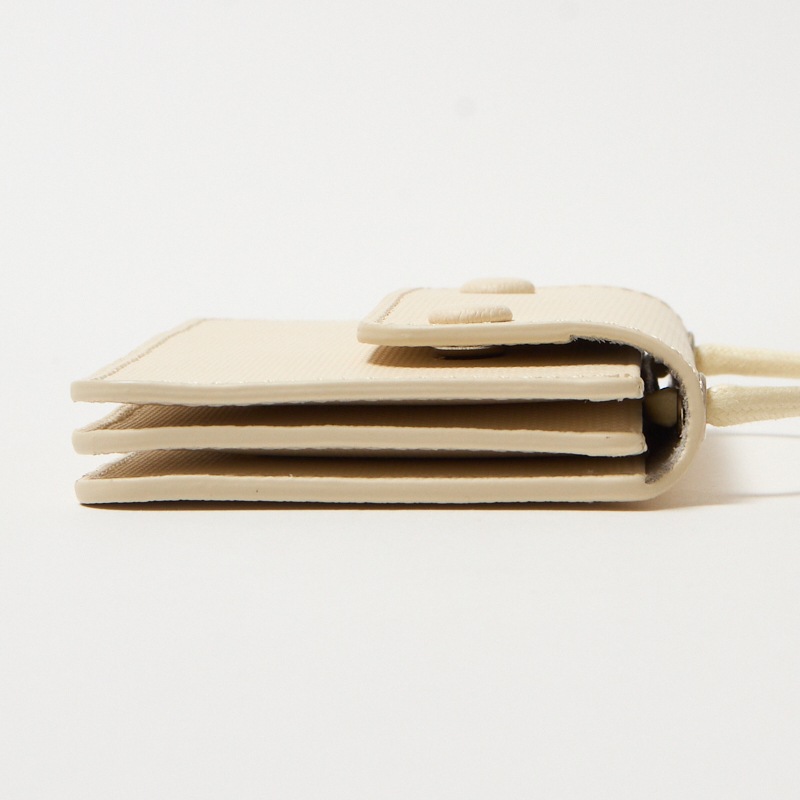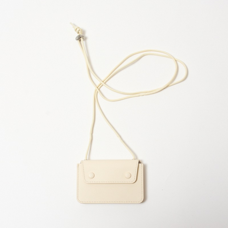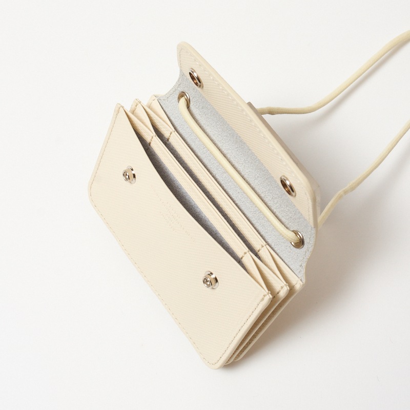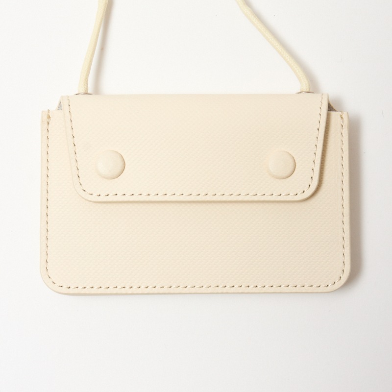 首から下げることのできるコード付きで、手ぶら派にお勧めなミニマム財布。